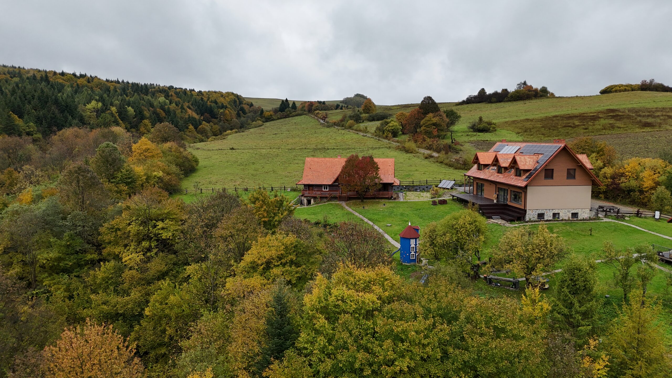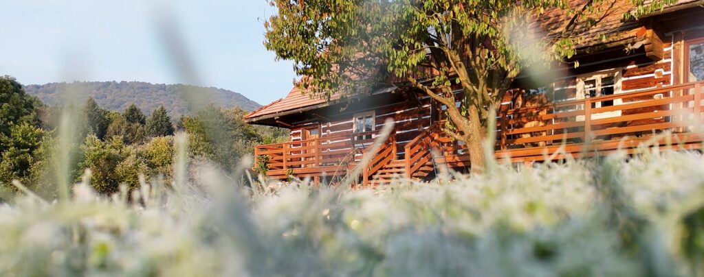 W ponad stuletniej łemkowskiej chacie (i przebudowanej stodole) oferujemy urządzone z sercem apartamenty z łazienkami i oszałamiającymi widokami. W częściach wspólnych kominki, tarasy, miejsca do relaksu, sala do yogi, dostęp do urządzonej kuchni, domek Muminków i plac zabaw dla dzieci… Możliwe masaże w starej zielarni…